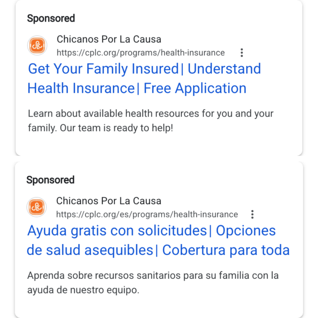 Through 20 bilingual social media campaigns (English and Spanish) using Meta, Google, Nextdoor, and Spotify ads, along with two SEO-focused blogs, we exceeded both goals by achieving a 788% increase in followers (from 142 to 1,261) and generating over 10,000 new users to CPLC’s health-related pages.